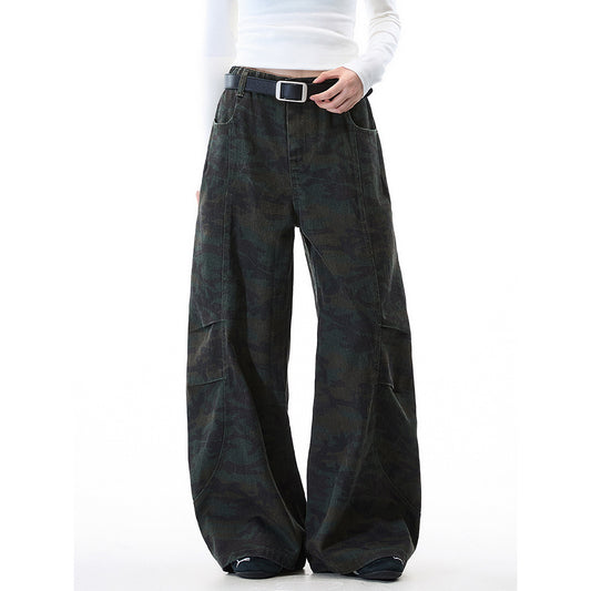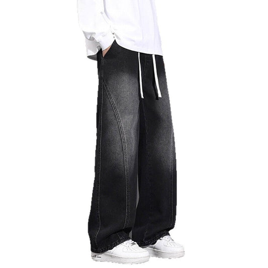 Jeans Men Autumn Winter Loose Straight Leg Pants Vintage Wide Leg Pants Men Youth Asymmetric Deconstruction Trousers