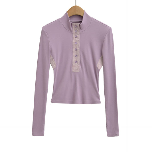 Stand up collar long sleeved T-shirt