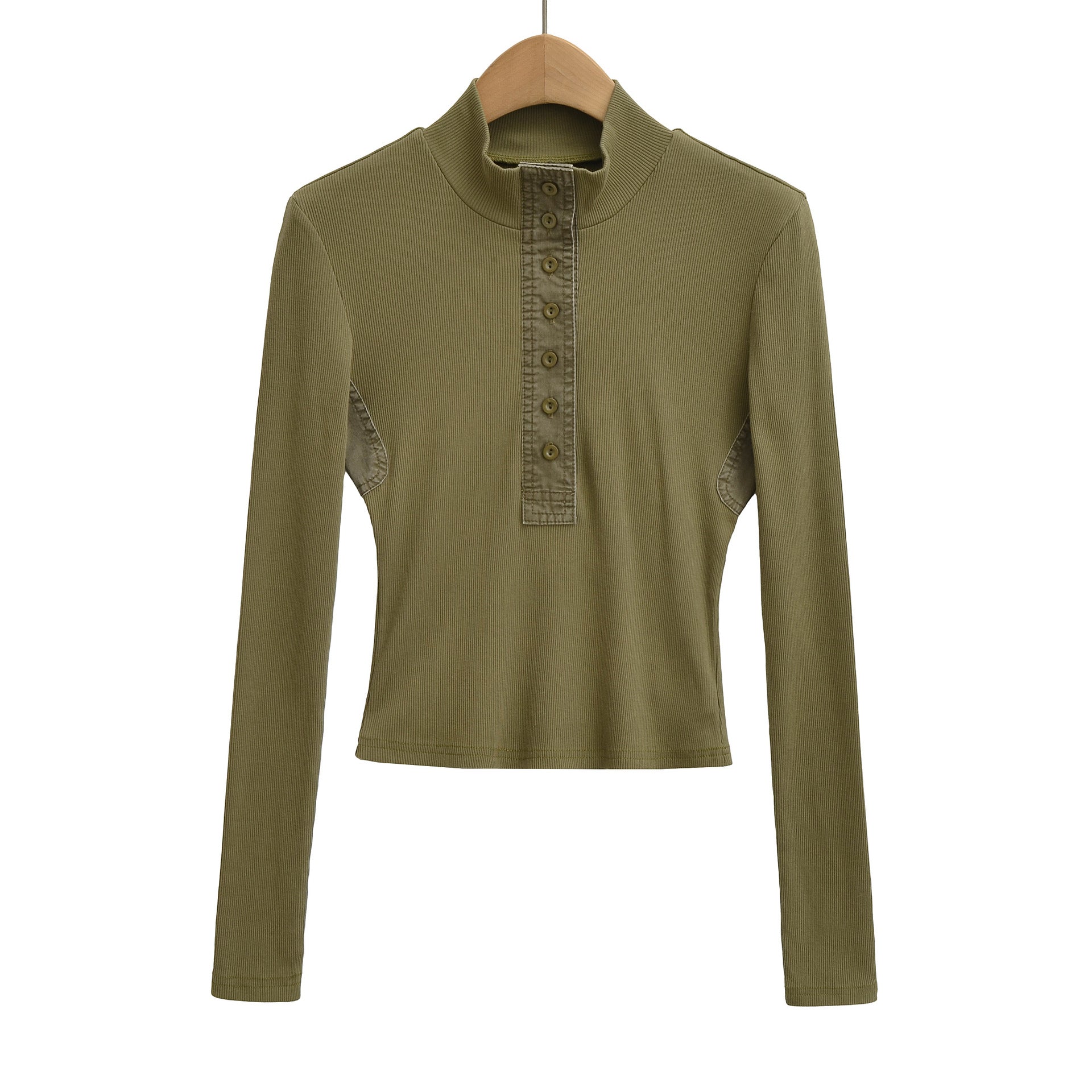 Stand up collar long sleeved T-shirt